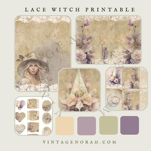 DIGITAL KIT~ LACE WITCH PRINTABLE SCRAPBOOK, JOURNAL PAPERS
