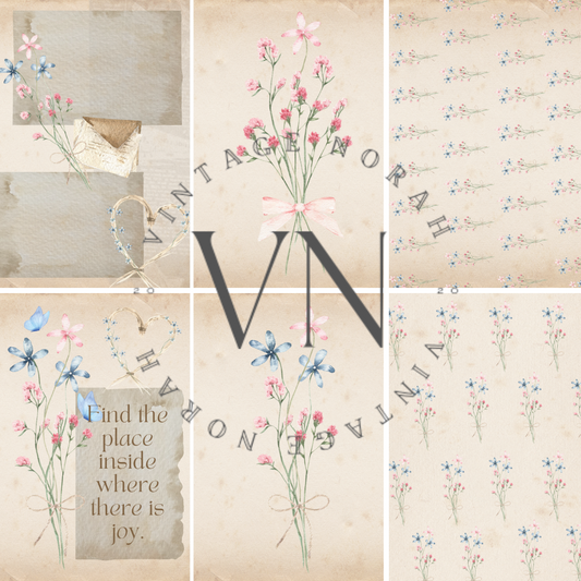 DIGITAL KIT~ Sea Of Flowers by VintageNorah. Printable, Pdf.