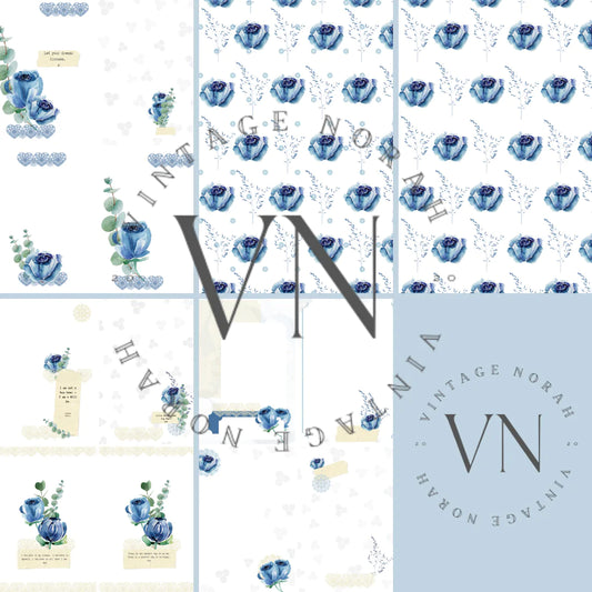 DIGITAL KIT~ BLUE ROSE by VintageNorah. Printable, Pdf.