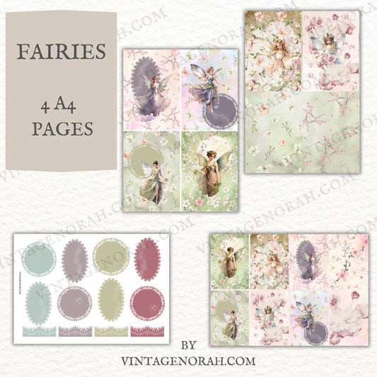 A DIGITAL KIT~Fairies by VintageNorah. Printable, Pdf