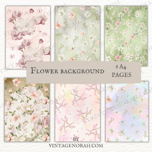 A DIGITAL KIT~FLOWER BACKGROUND PAGES by VintageNorah. Printable, Pdf.