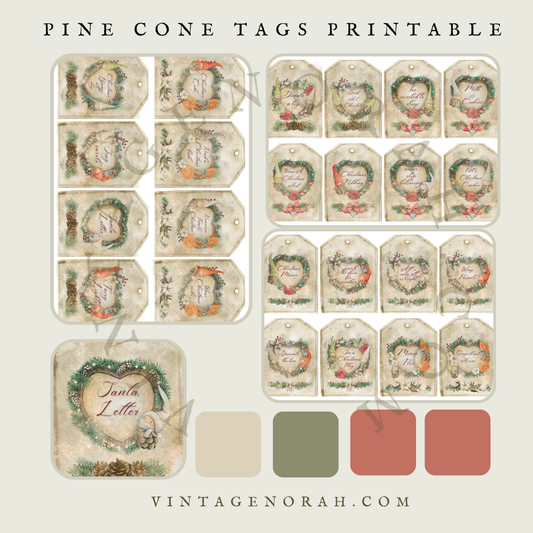 DIGITAL KIT ~ Pine Cone , Christmas, Tags , Advent, Bucket List, Printable Papercraft. Instant download. PDF. scrapbooking, A4