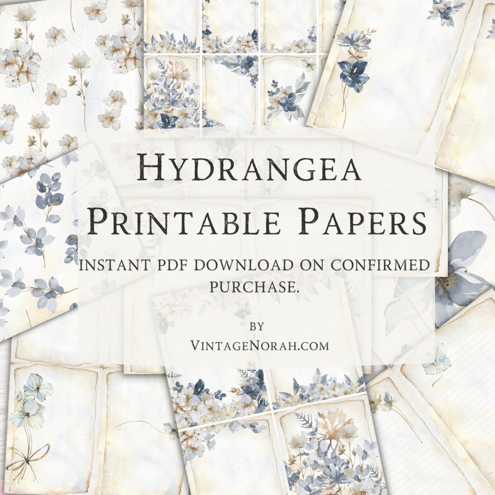 Hydrangea Printable Papers. Digital PDF Instant Download. Scrapbooking. Journals, Papercraft. Supplies.