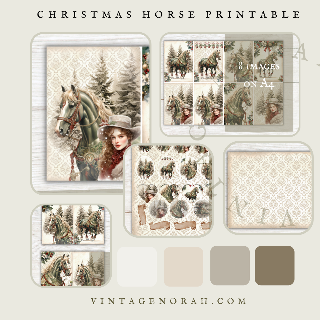 DIGITAL KIT~ CHRISTMAS HORSE by VintageNorah. Printable, Pdf.